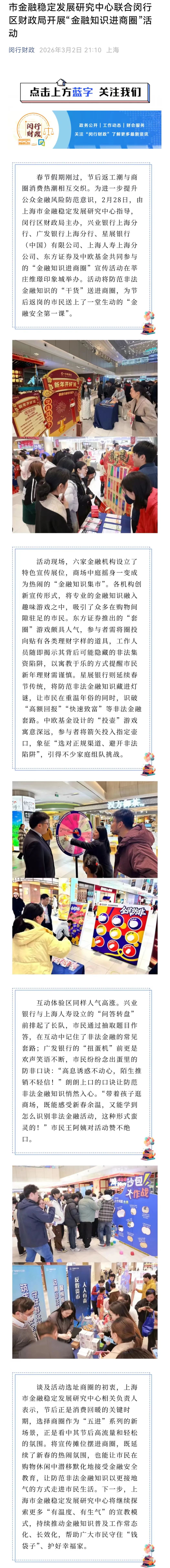 市金融稳定发展研究中心联合闵行区财政局开展“金融知识进商圈”活动